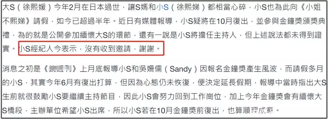 没有被邀请公开缅怀大S?没有被邀请参加金钟奖?还是未来也许有可能接受邀请……