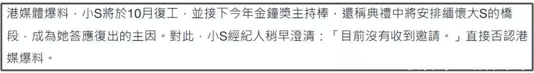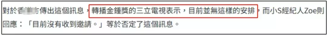 金钟奖转播方也出面否认了,表示没有安排小S复出环节。