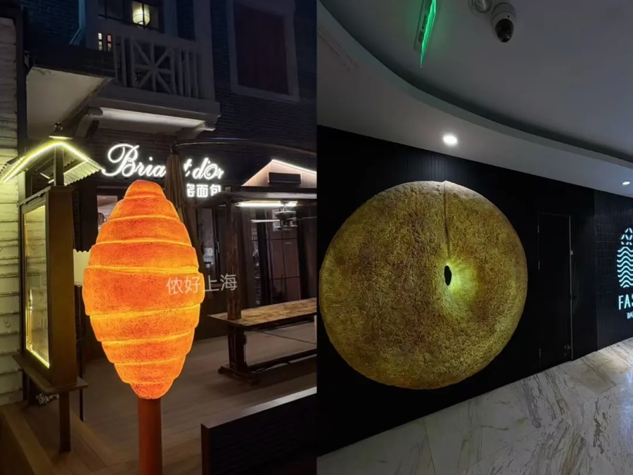 还有地铁口的巨型海盐面包灯,